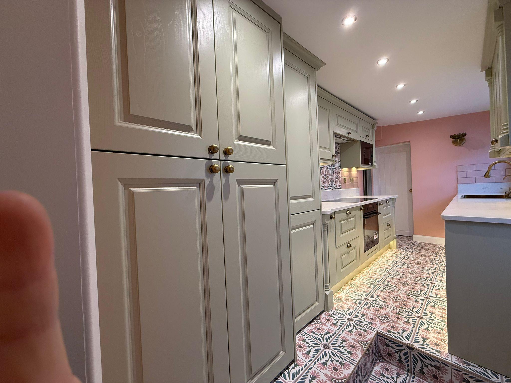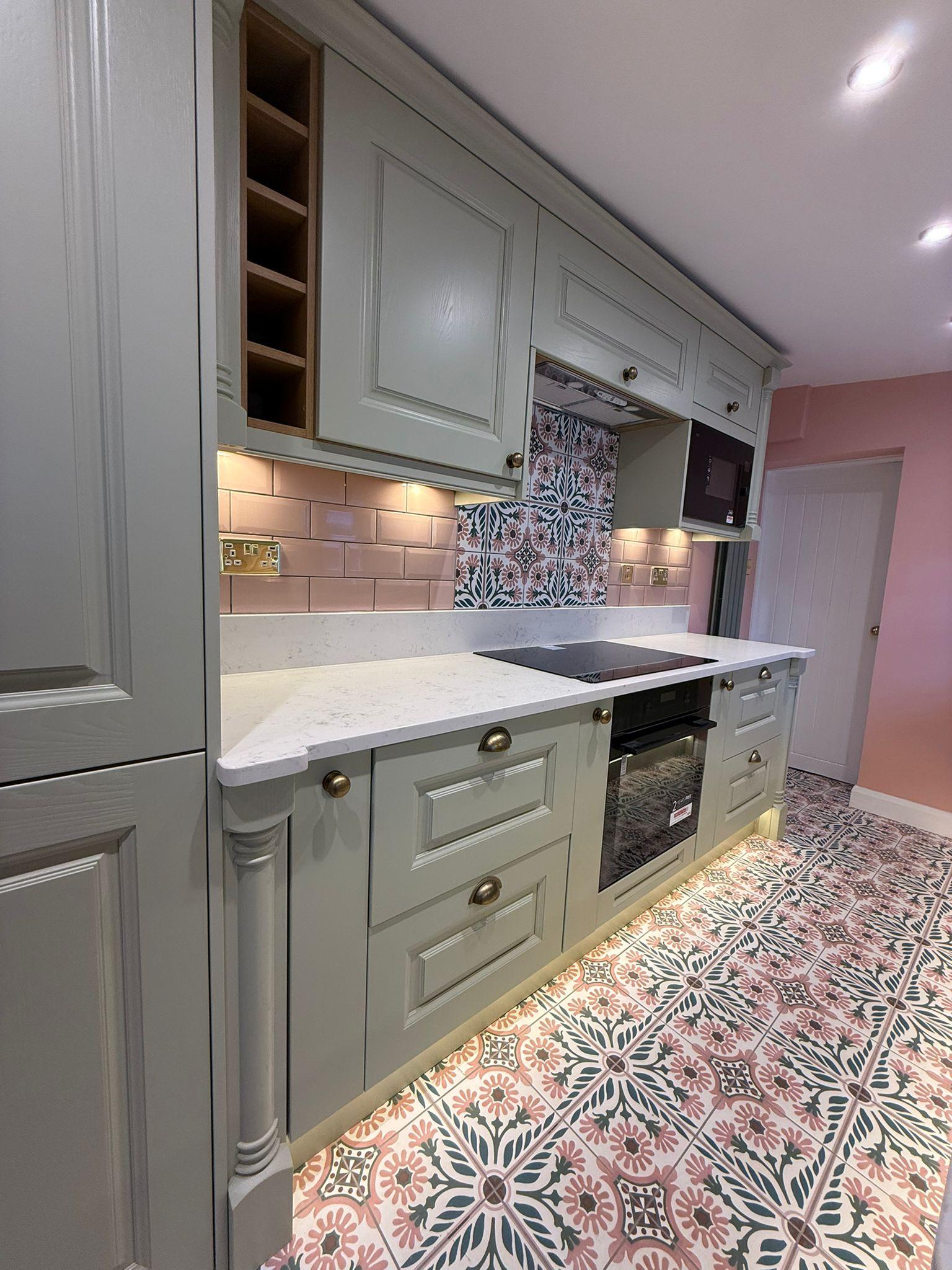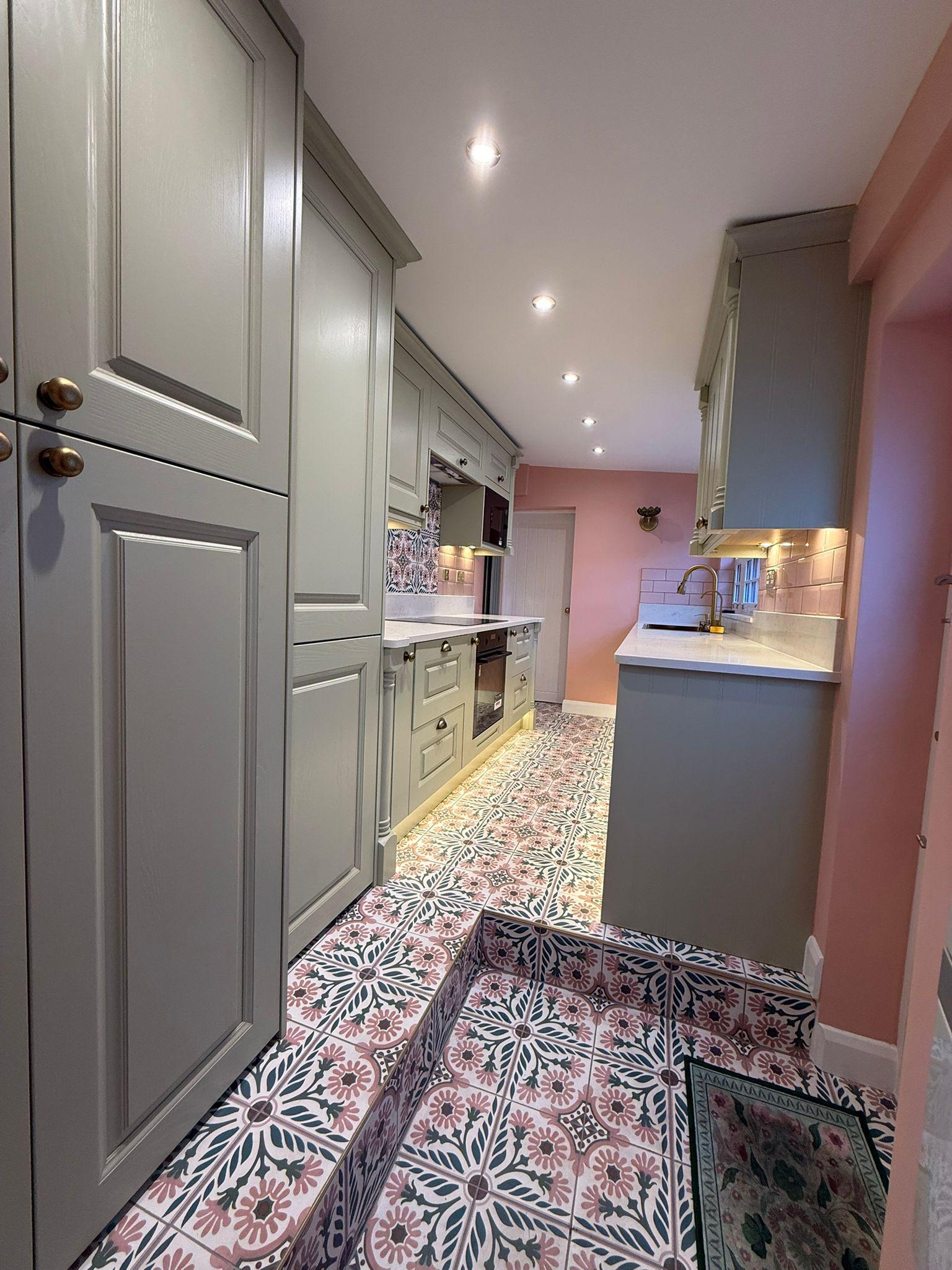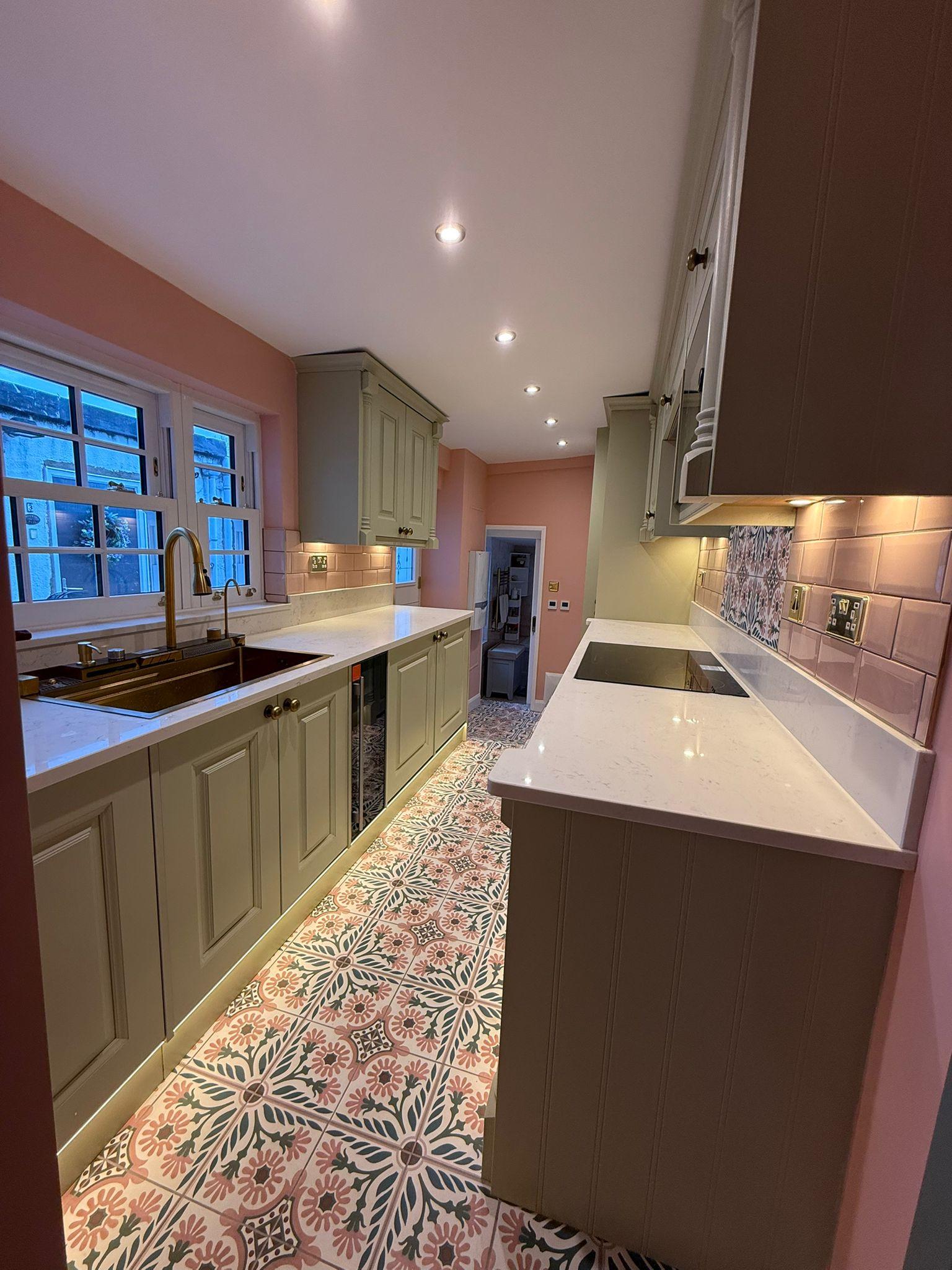 Complete renovation of a galley kitchen, creating a stylish and elegant space with a high-quality finish. The project includes bespoke cabinetry, decorative floor and wall tiling, integrated appliances, and modern lighting. Soft colour tones and thoughtful details were used throughout to deliver a practical yet refined kitchen with a timeless look.